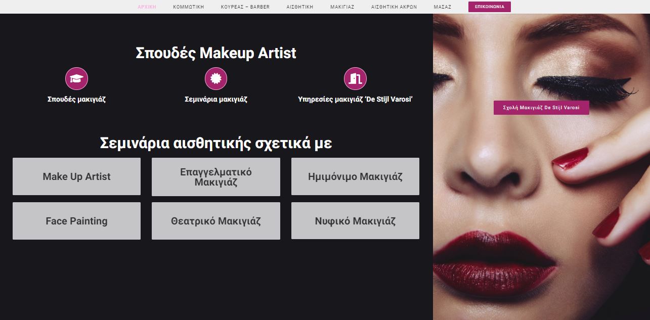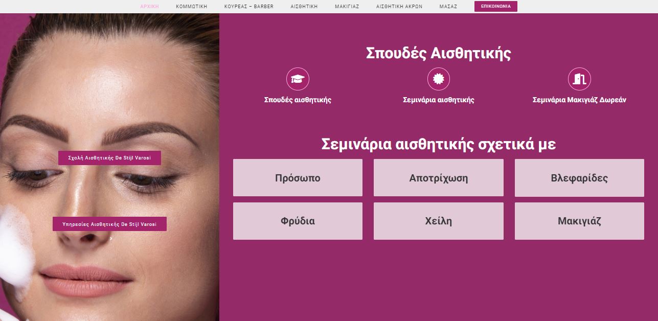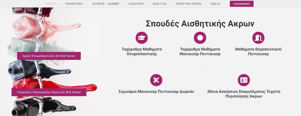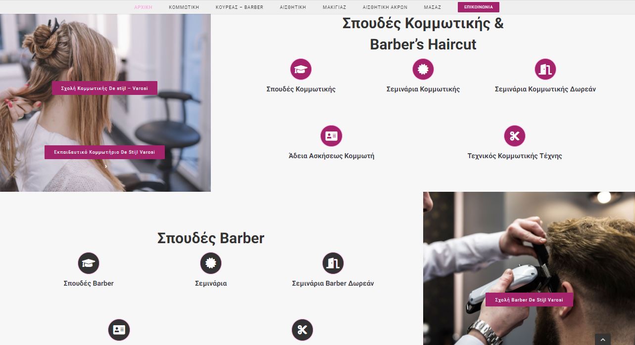 Този проект се отнася до училище за красота в Солун. Клиентът се свърза с нас след препоръка за нашите услуги от друг клиент. Той вече имаше уебсайт, когато се свърза с нас, но беше много стар и дизайнът му не можеше да поддържа такъв бизнес. Нашият клиент е частен IEK, в който се преподават курсове по фризьорство, бръснарство, грим, ноктопластика, масаж, естетика и в същото пространство се предоставят услуги от неговите студенти на физически лица в някои от тези артикули. Като проект беше доста голям, защото трябваше да разберем със SEO маркетингови проучвания какво точно търсят кандидат-студентите по всеки предмет, за да попаднат в училището, което ги интересува.