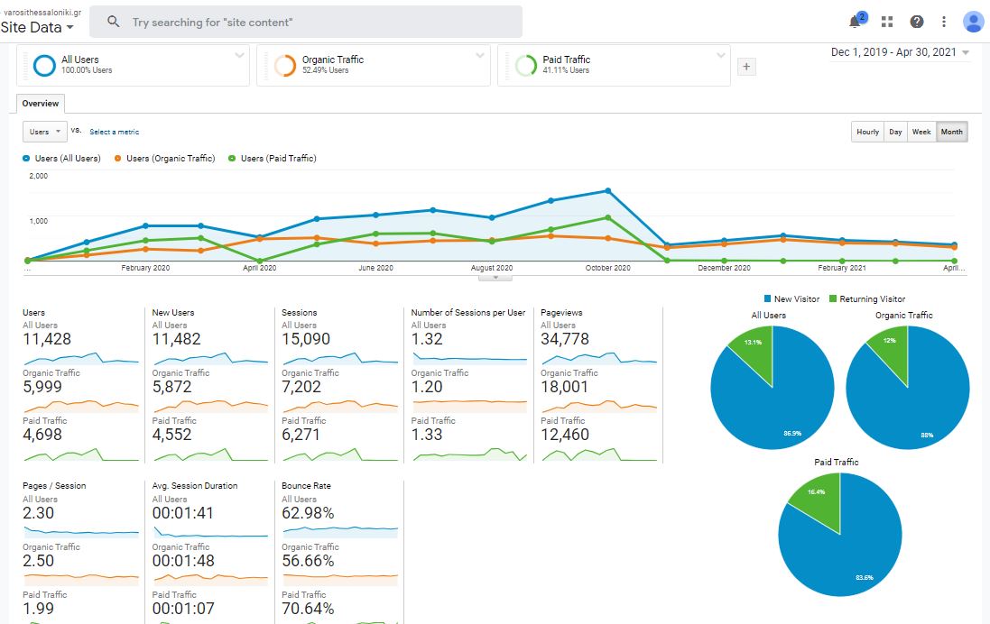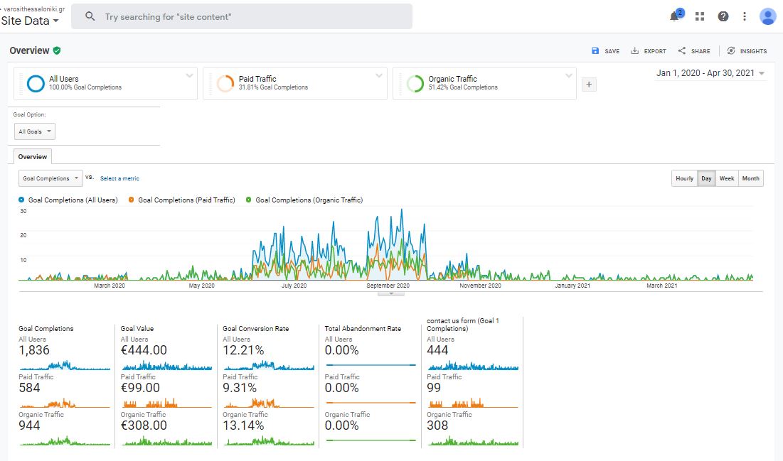 Чакаме бизнеса да отвори отново, за да продължим започнатото. През месеците, когато е затворен, ние спряхме всички наши промоции, както и SEO. През цялото това време клиентът е имал 7171 сесии от органичен трафик, което съответства на приблизително 3600 евро рекламен бюджет, ако го придобие с реклами в Google (думите в неговия предмет струват приблизително 0,5 евро на клик). Вярваме, че до степента, в която сме успели да постигнем резултат, ние сме го постигнали, но са необходими допълнителни усилия, за да помогнем на клиента да се върне.